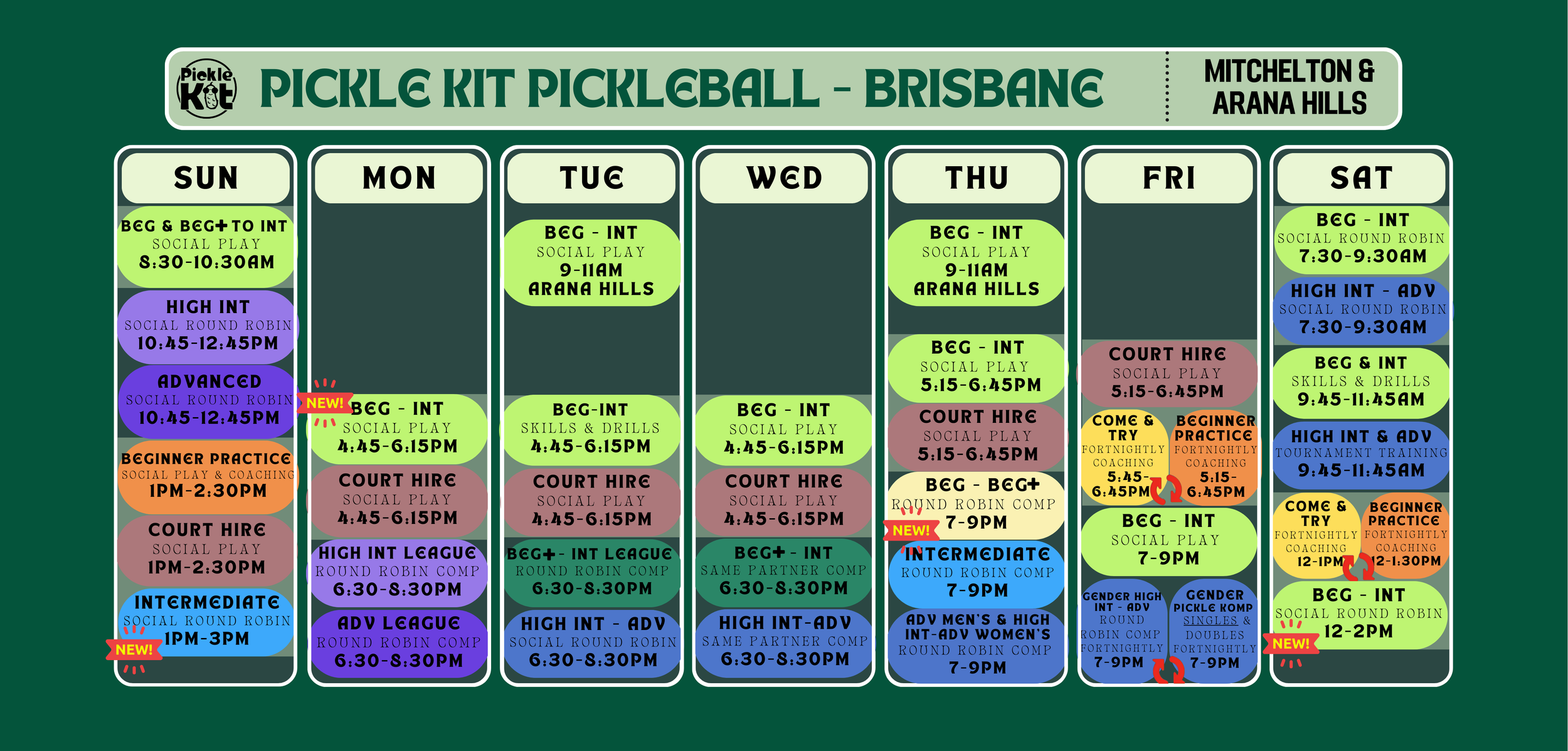 Suitable ‘Beginner’ sessions for new Pickle Kit players: (see timetable below)